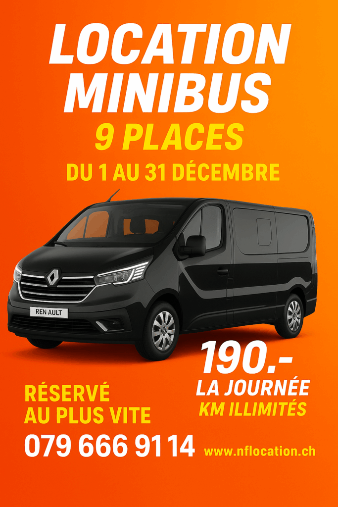 ​Pour rappel, une caution de 300.-CHF vous sera demandée, comptant à la remise du mini bus.